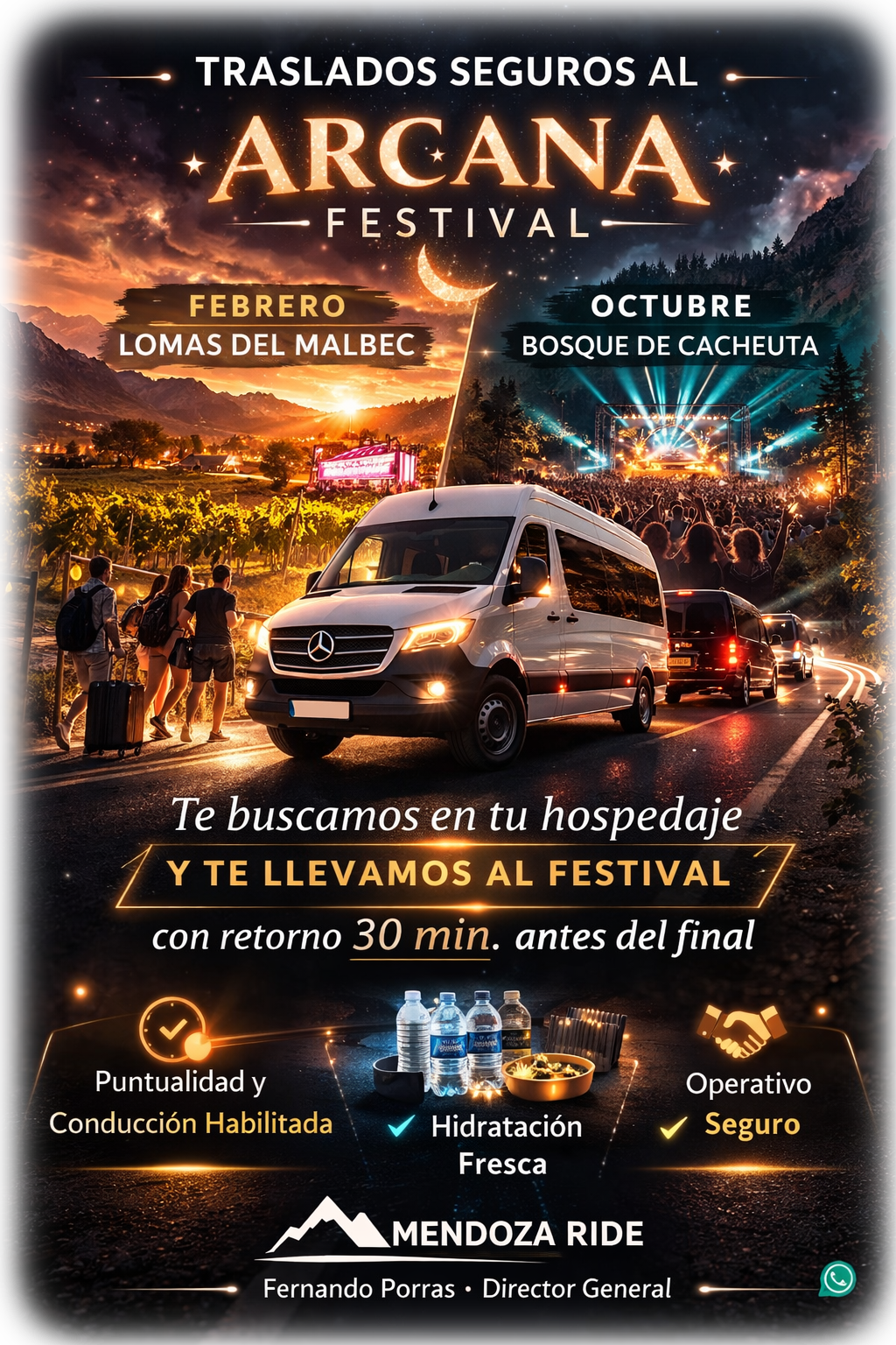 🛡️ Conducción habilitada, puntualidad real y acompañamiento operativo durante toda la noche. El evento comienza cuando sales hacia él, y llegar bien también es parte de vivirlo.